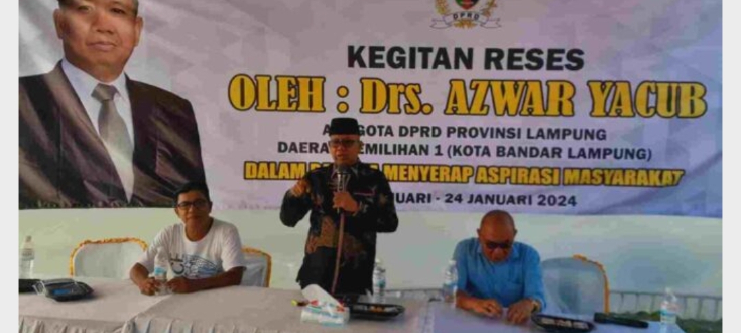 JURAI.ID, LAMPUNG (SMSI) — Anggota Komisi IV DPRD Provinsi Lampung (dapil 1 Kota Bandar Lampung) dari Partai Golkar Drs.H.Azwar Yacub hari Sabtu (20/1/2024) melakukan Reses (serap aspirasi). Kali ini lelaki yang tahun ini kembali mencalonkan diri sebagai Caleg dari Dapil 1 Kota Bandar Lampung melakukan tatap muka dengan warga masyarakat Kecamatan Sukabumi – Perumahan Puskud – Bandar Lampung, sekira pukul 14. 00 – s/d 16.00 wib.