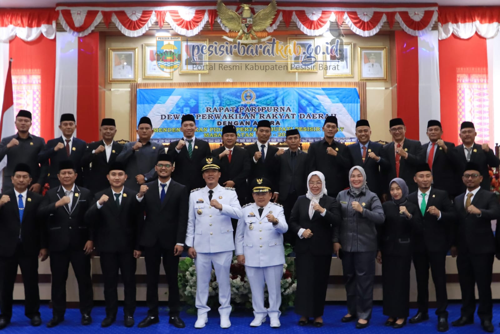 JURAI.ID, (SMSI)- Bupati – Wakil Bupati Pesisir Barat (Pesibar), Dedi Irawan – Irawan Topani, S.H., M.Kn., menghadiri Rapat Paripurna Dewan Perwakilan Rakyat Daerah (DPRD) dengan agenda mendengar pidato pertama Bupati Pesibar masa jabatan 2025-2030, di ruang rapat paripurna DPRD Pesibar, Selasa (4/3/2025).