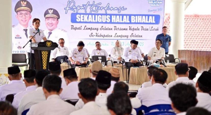 Pesan itu disampaikan Bupati Egi dalam acara rapat koordinasi sekaligus halalbihalal dengan kepala desa, lurah, dan camat se-Kabupaten Lampung Selatan, di Aula Sebuku, rumah dinas bupati setempat, Rabu, 23 April 2025, yang juga turut dihadiri Wakil Bupati, M. Syaiful Anwar.