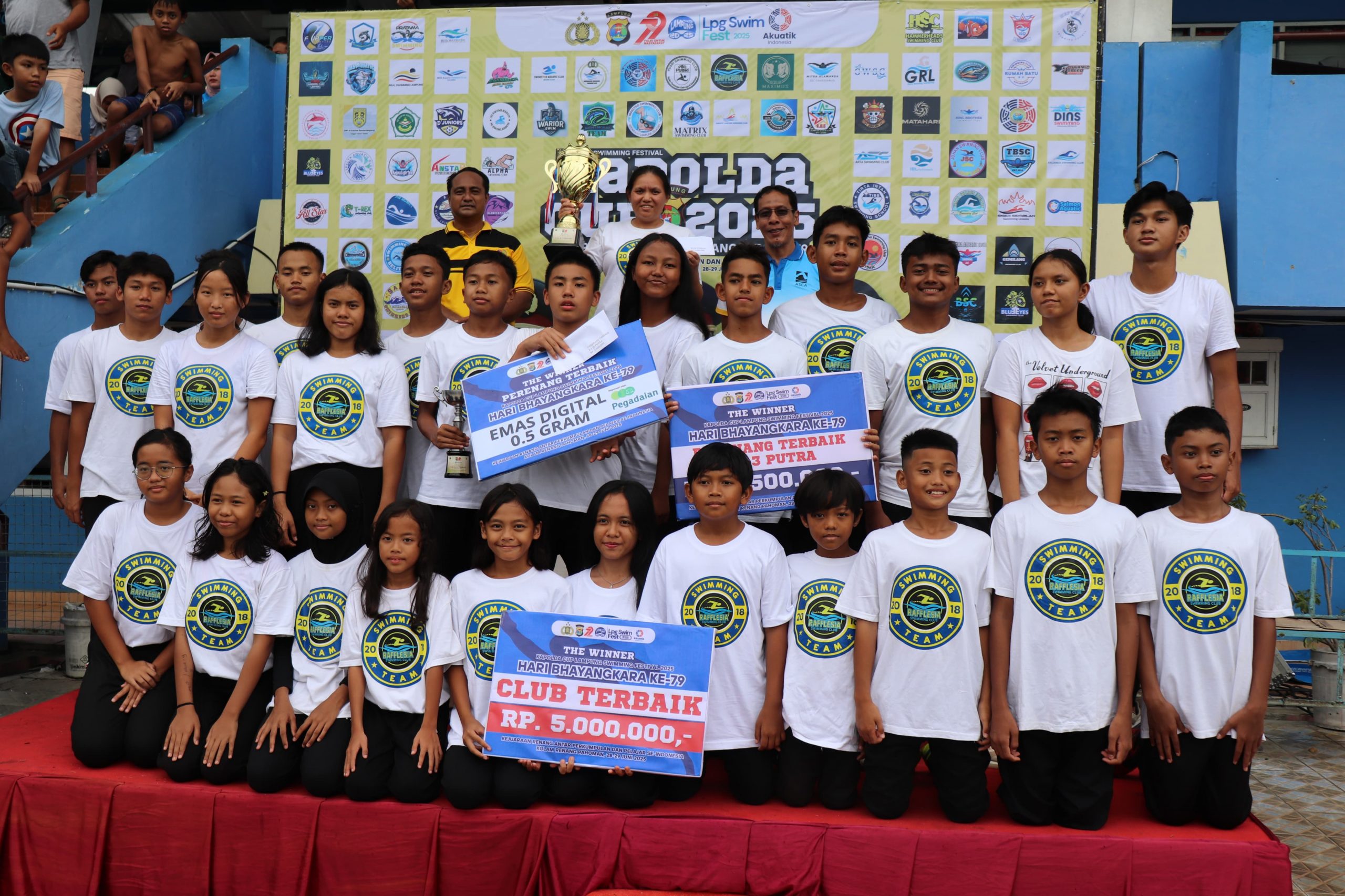 Direktur Direktorat Tahanan dan Barang Bukti (Dit Tahti) Polda Lampung, AKBP Dodon Priyambodo, yang juga menjadi penanggung jawab Lampung Swimming Festival (LSF) Kapolda Lampung Cup 2025, menyerahkan langsung penghormatan kepada club terbaik dan perenang terbaik dalam ajang bergengsi tersebut. (*)