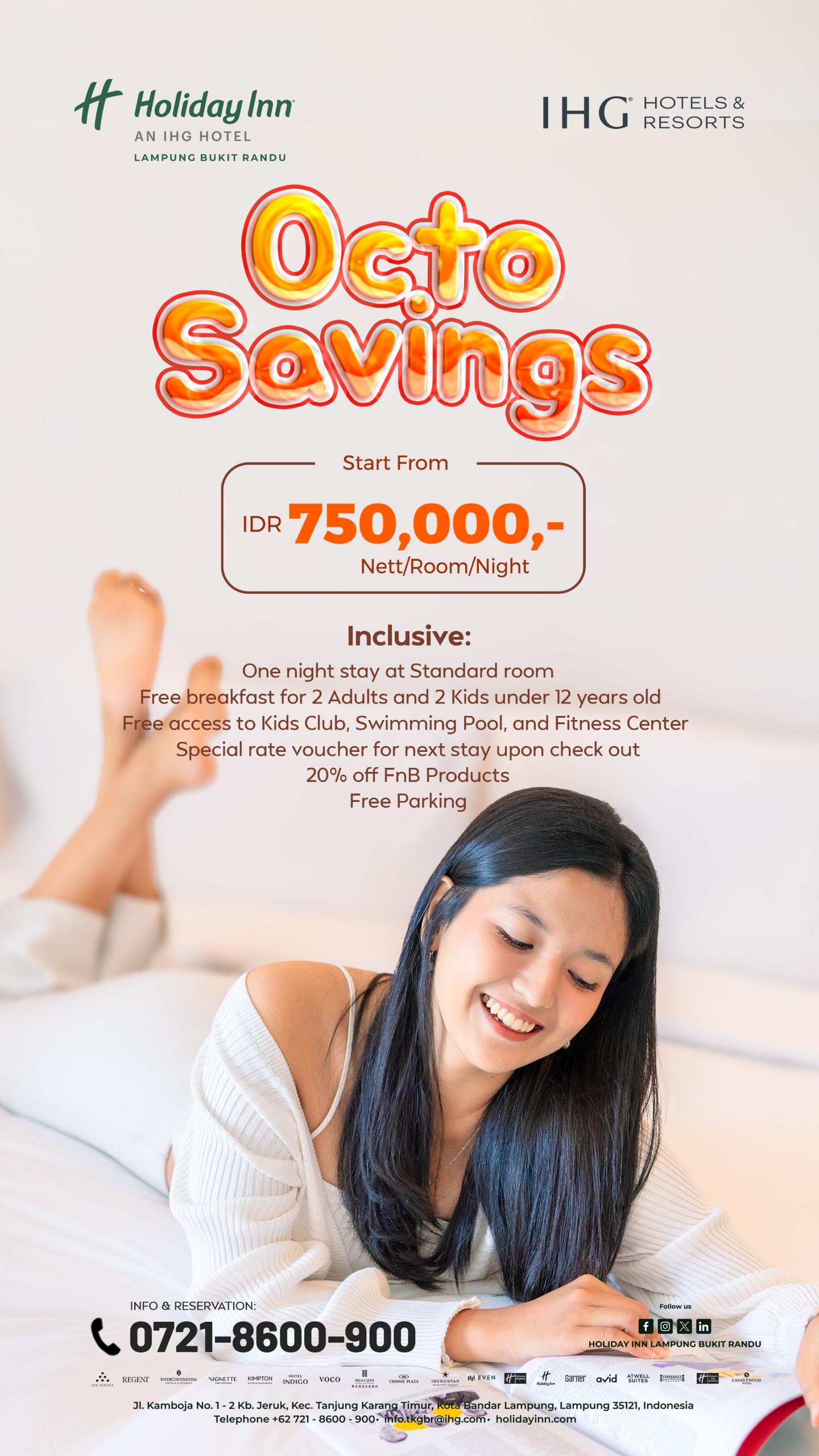 “Promo OctoSavings ini merupakan bagian dari komitmen kami untuk menghadirkan pengalaman menginap berkualitas dengan harga terjangkau. Kami ingin memberikan lebih dari sekadar tempat beristirahat, tetapi juga layanan hangat, fasilitas lengkap, serta penawaran menarik yang memberi nilai tambah,” ujar Ilham Zaid Sungkar, General Manager Holiday Inn Lampung Bukit Randu.