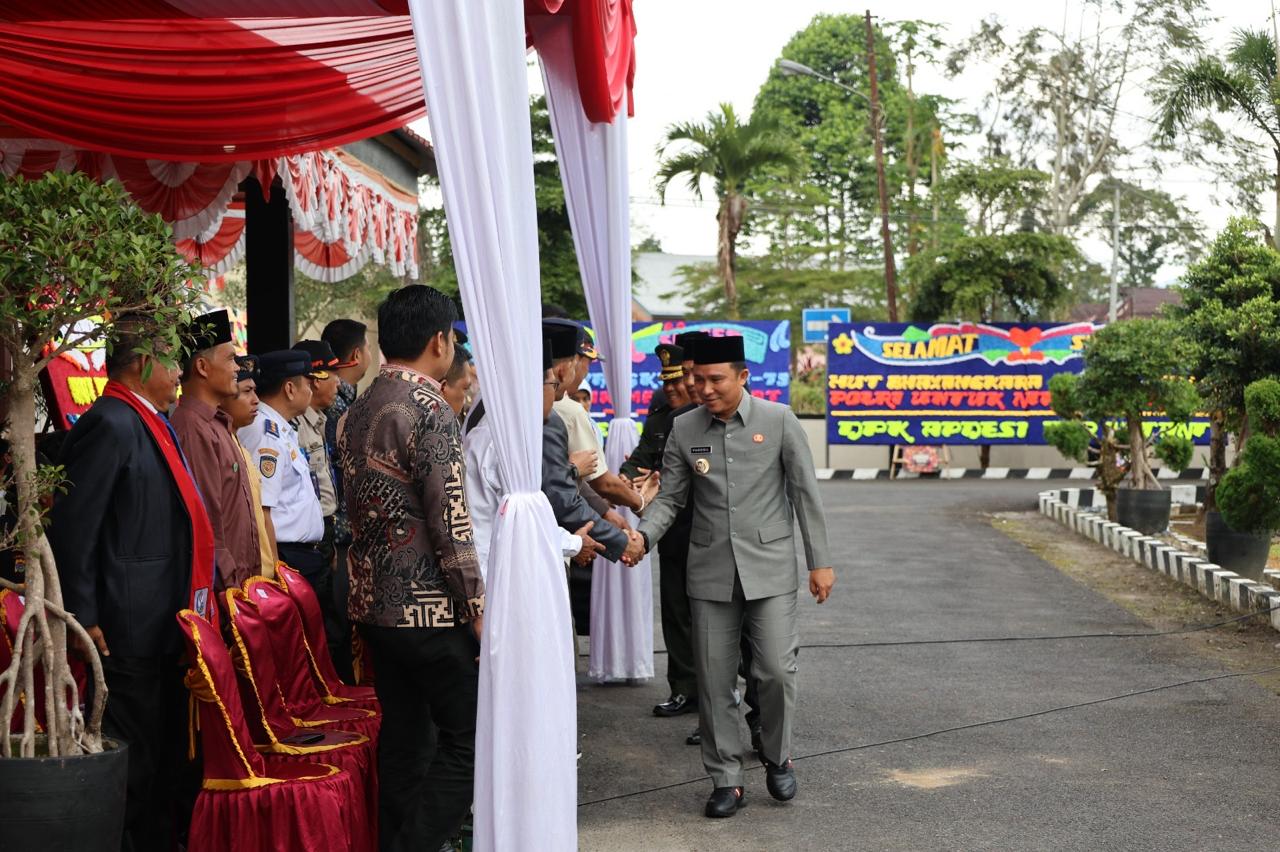 JURAI.ID, LAMPUNG BARAT (SMSI)- Bupati Lampung Barat, Parosil Mabsus mengikuti langsung upacara peringatan Hari Ulang Tahun (HUT) ke-79 Bhayangkara yang digelar di pelataran Polres Lampung Barat, Selasa 01 Juli 2025.