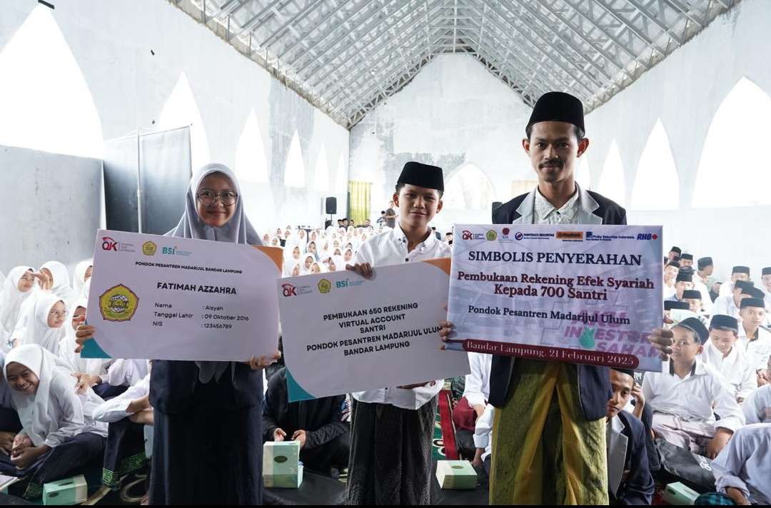 Selain itu, secara simbolis dilakukan pembukaan rekening tabungan syariah bagi 600 santri serta pembukaan akun saham syariah oleh beberapa perusahaan sekuritas seperti PT Phintraco Sekuritas, PT Philip Sekuritas, PT Maybank Sekuritas Indonesia, dan PT RHB Sekuritas Indonesia Cabang Lampung.