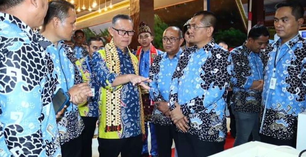 Pj Bupati didampingi Sekretaris Daerah (Sekda) Drs. Lekok, M.M., beserta jajaran pejabat Pemkab Lampung Utara juga menyempatkan diri melihat langsung masing-masing stan yang ada di anjungan Kabupaten Lampung Utara.
