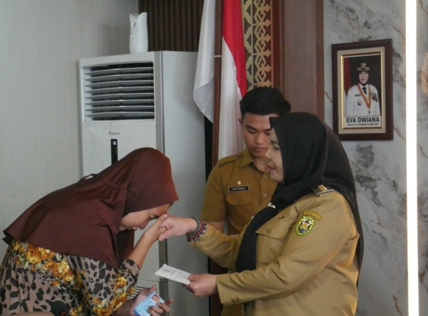 Penyerahan bantuan dilakukan secara langsung oleh Wali Kota Eva Dwiana di Ruang Rapat Wali Kota, Selasa siang.