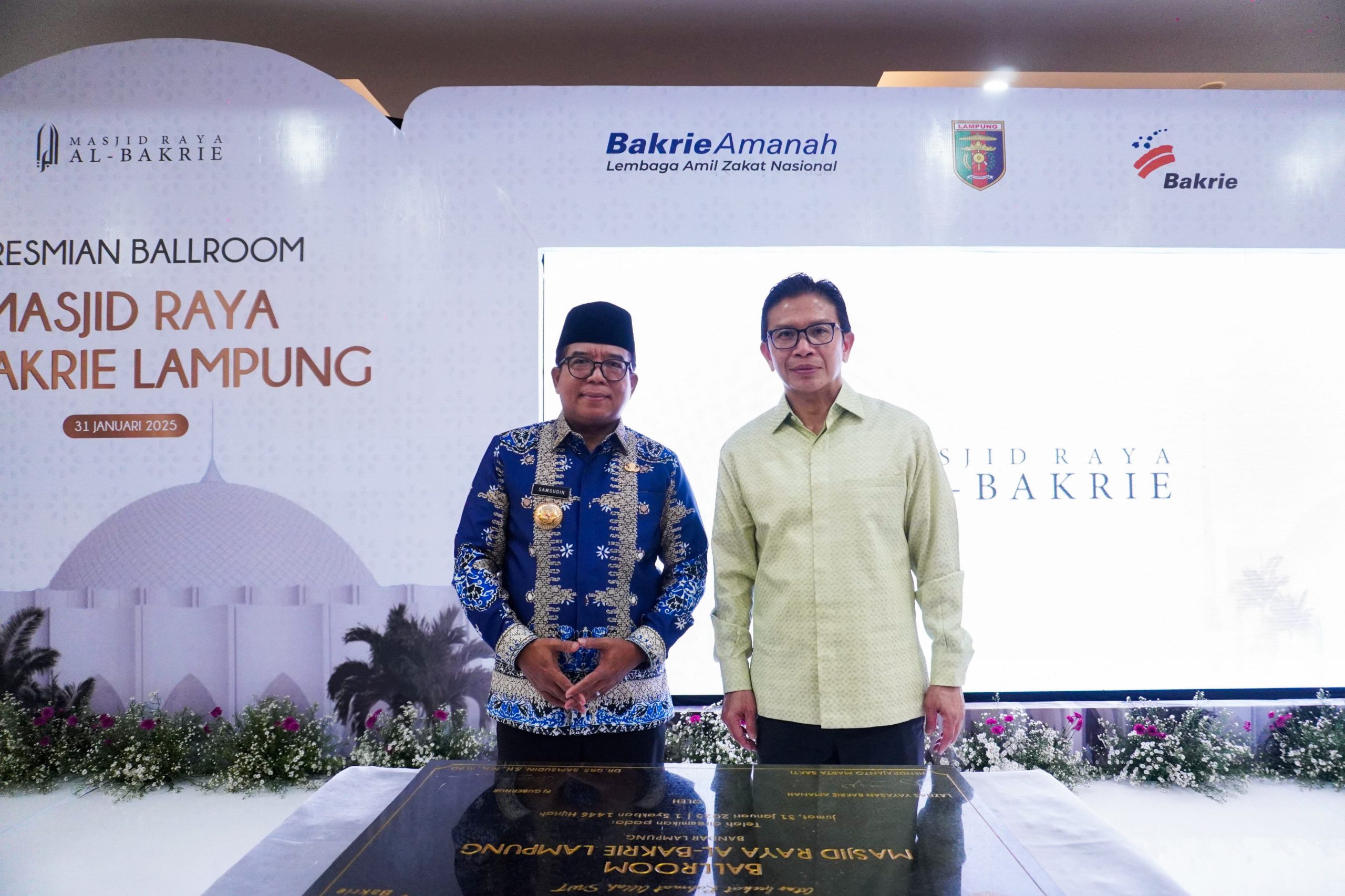 Acara peresmian Ballroom Masjid Raya Al-Bakrie ditandai dengan dilakukannya penandatanganan pada batu prasasti oleh Roy Hendrajanto Marta Sakti mewakili keluarga besar Bakrie dan Pj Gubernur Lampung Dr. Drs. Samsudin, S.H., M.H., M.Pd.