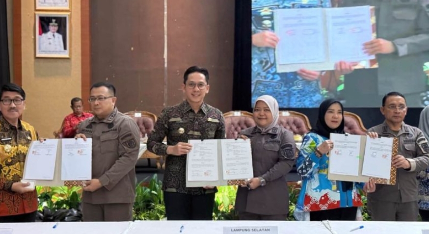 JURAI.ID, LAMPUNG SELATAN (SMSI) – Bupati Lampung Selatan, Radityo Egi Pratama menghadiri penandatanganan perjanjian kerja sama antara bupati/wali kota dengan kepala Kejaksaan Negeri (Kajari) se-Provinsi Lampung di Gedung Sesat Agung Bumi Sai Wawai, Kota Metro, Provinsi Lampung, Kamis (14/8/2025).