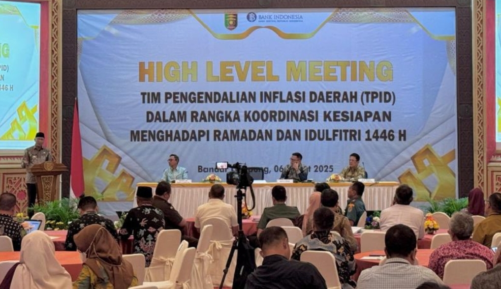 JURAI.ID, BANDAR LAMPUNG (SMSI)- Memasuki Ramadan dan jelang Idulfitri 1446 H, Tim Pengendalian Inflasi Daerah (TPID) Provinsi Lampung berkomitmen untuk menjaga inflasi terkendali pada sasaran. “Kita semua perlu bergandeng tangan melakukan langkah-langkah pengendalian inflasi agar tidak terjadi masalah di tengah meningkatnya kebutuhan masyarakat,” disampaikan Gubernur Lampung, Rahmat Mirzani Djausal, S.T., M.M. pada High Level Meeting (HLM) yang diikuti oleh Bupati/Walikota, FORKOPIMDA, OPD, dan asosiasi pelaku usaha bertempat di Kantor Perwakilan Bank Indonesia Provinsi Lampung. Kamis (6/3/2025).