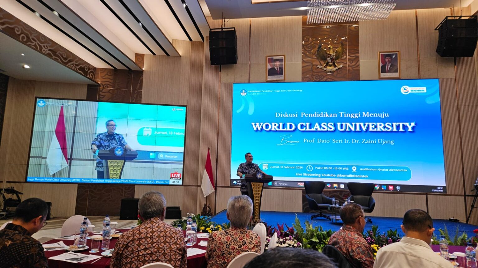 JURAI.ID, LAMPUNG (SMSI) – Wakil Rektor Bidang Perencanaan, Kerja Sama, dan Sistem Informasi (PKSI) Universitas Lampung (Unila) Prof. Dr. Ayi Ahadiat, S.E., M.B.A., mengikuti Workshop Perguruan Tinggi Menuju Word Class University (WCU) di Kemdiktisaintek, Jumat, 13 Februari 2026.